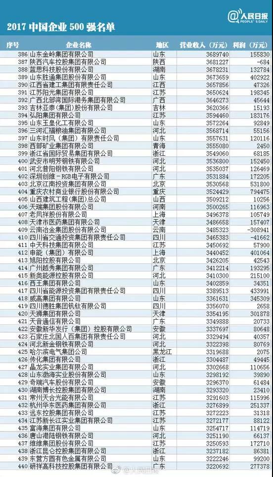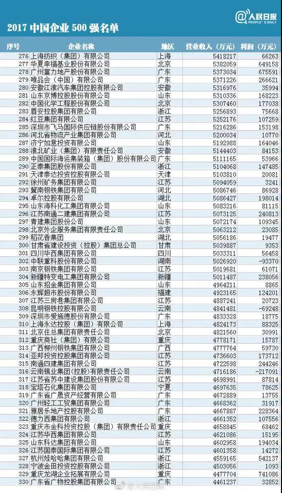 The list of the 500 top 2017 Chinese enterprises released in September 10th is the list of China's top 500 enterprises in China for sixteenth consecutive years in accordance with international practice and the China Enterprise Association and China Entrepreneurs association. As an important monitoring index for the operation of Chinese enterprises, the list of China's top 500 enterprises each year outlines the development path of key industries and large enterprises.