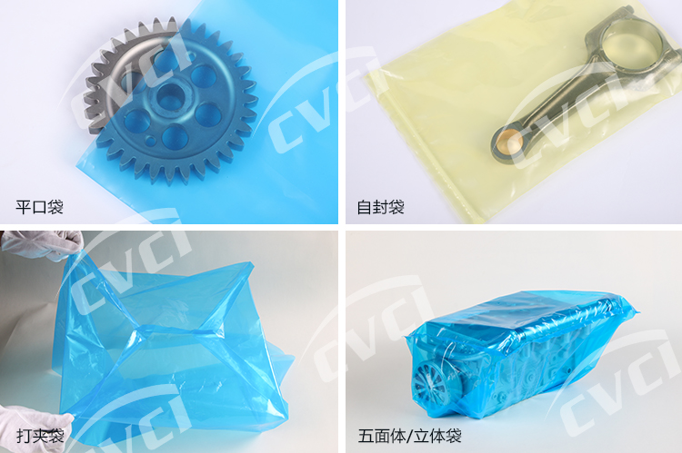 氣相防銹塑料薄膜以聚烯烴類樹脂為基材,加入揮發性緩蝕劑(VCI),經過一些列工藝制成。氣相防銹膜在實際應用中主要以袋狀或片狀形式呈現(詳見產品狀態),包裝保護客戶的產品,集防銹與包裝功能為一體。我們膜的厚度、顏色、尺寸及形式根據客戶實際需求進行定制化、個性化生產。