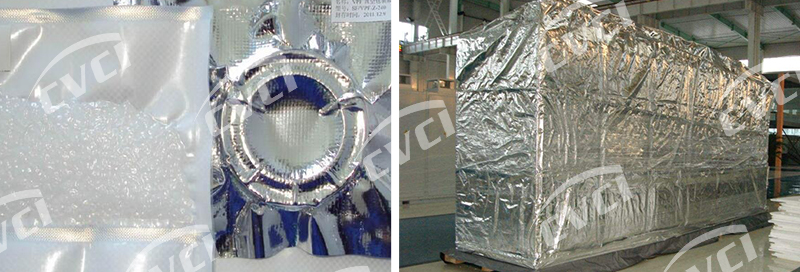 采用該產品包裝金屬制品后,可有效阻隔外界氧氣、水蒸氣、腐蝕性氣體、灰塵、陽光等進入包裝空間。在密封條件下可有效防止金屬銹蝕,并減緩橡膠、塑料等非金屬材料的老化變質,用于各種器材除氧、干燥、真空封存包裝,特別適用于電子、光學、儀表等精密器材的長期封存;也可用于大型設備、發動機、齒輪箱等大件器材的封套封存。